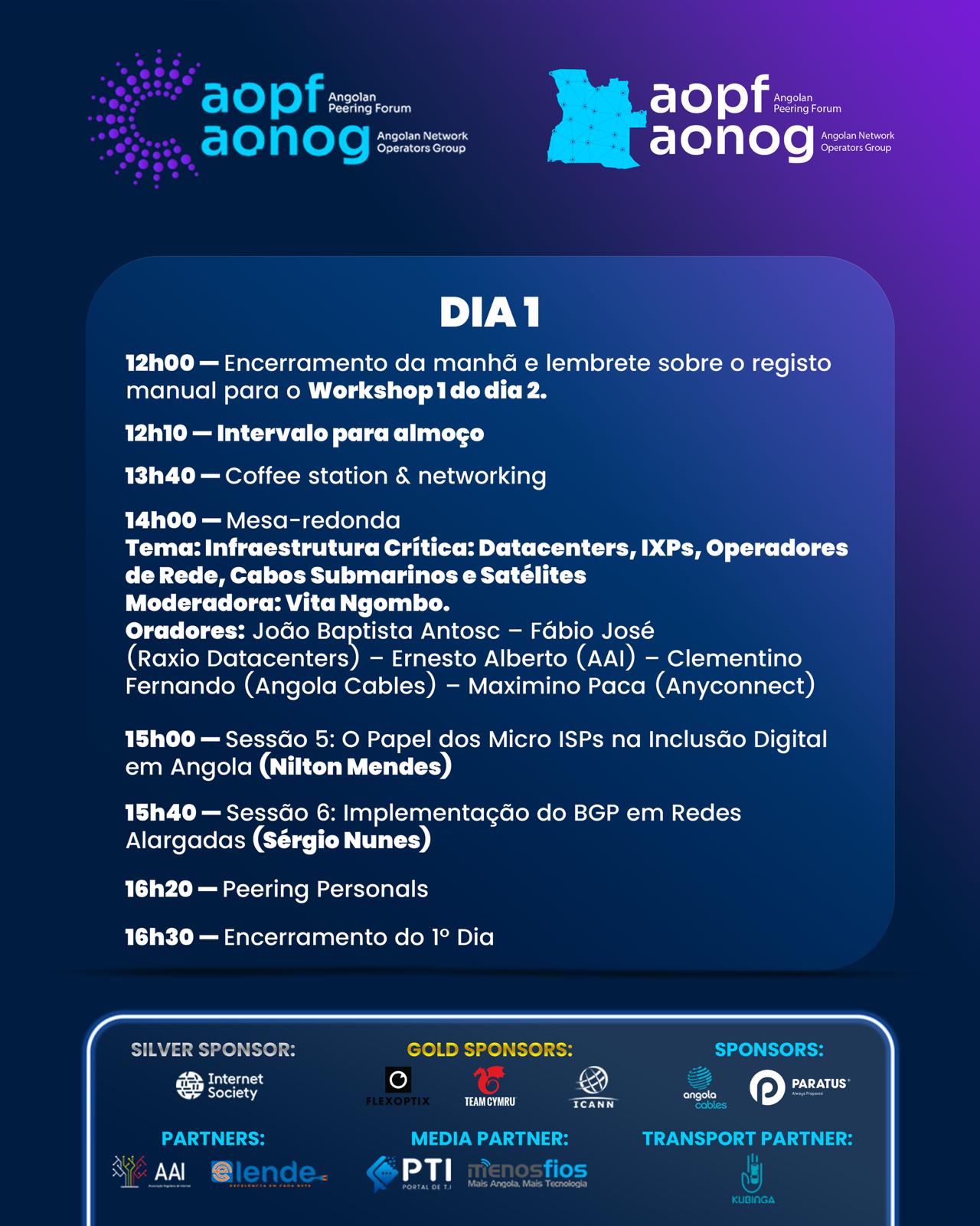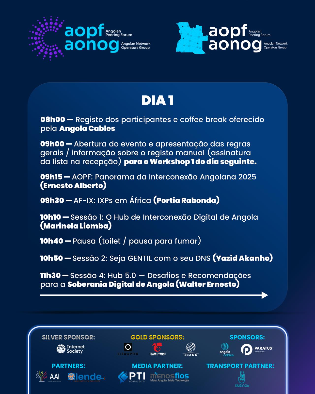 Segundo o Eng.º Darwin Costa – Fundador do Evento, “O AOPF e o AONOG representam um marco para a consolidação da comunidade técnica nacional. Acreditamos que a partilha de conhecimento e a colaboração entre operadores e engenheiros de rede são essenciais para impulsionar a conectividade, a inovação e a soberania digital em Angola”.