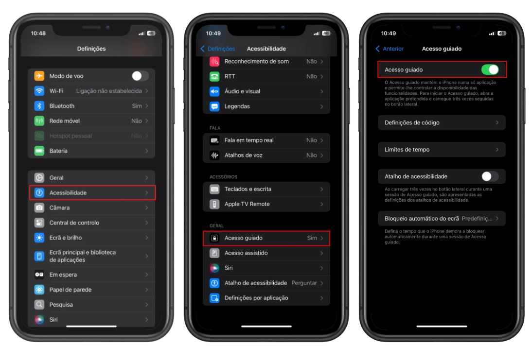 - Acesso guiado para limitar o uso a uma só app do iPhone
