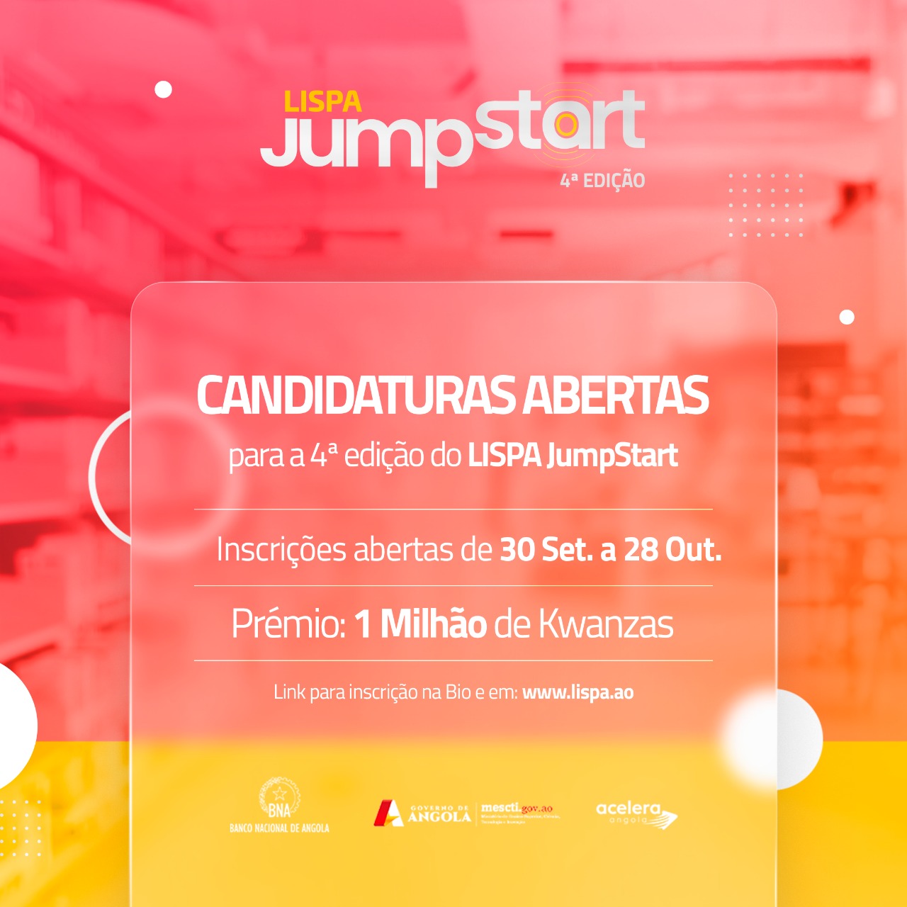 Está aberta a 4° edição do LISPA JumpStart, um programa acelerador a nível nacional que apoia ideias inovadoras, organizado pelo Laboratório de Inovação do Sistema de Pagamentos de Angola (LISPA) e o Acelera Angola.