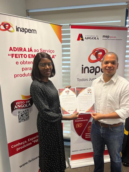 Já com muitos anos a operar no mercado nacional, uma startup 100% angolana com experiência no desenvolvimento de soluções de Marketing e estudos de mercado com recurso a redes Wi-Fi, recebeu no dia 28 de fevereiro, nas instalações do INAPEM, em Luanda, o certificado de adesão do Serviço Feito em Angola, para utilização do Selo Feito em Angola, em ato presenciado pelo PCA do Instituto Nacional de Apoio às Micro, Pequenas e Médias Empresas (INAPEM), João Nkosi.