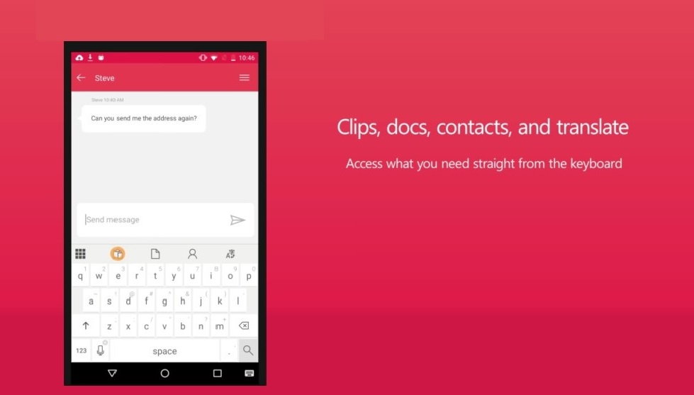 Este teclado tem um design minimalista, com alguns de fixação e de busca poderosas, botões na parte superior, podendo assim colocar os seus arquivos no OneDrive, copiar e colar links, e até usar o mesmo em aplicativos de mensagens e ainda vincular o teclado com uma conta do Office 365.